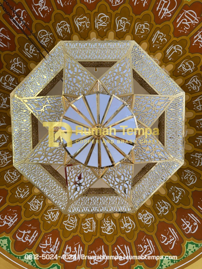 Pada era sekarang ini kemajuan design telah berkembang pesat menyesuaikan perkembangan zaman, namun tentu ada beberapa model yang tak lekang dmakan zaman. Nah, model tersebut seperti model lampu masjid maroko ini. Model lampu dengan bahan logam kuningan ini memiliki nuansa yang sangat kental akan Timur Tengah dengan konsep warna emas yang mewah dan elegan. Untuk memperdalam konsep design kami berikan sentuhan ukir handmade dengan motif ornamen islami pada setiap sudutnya. Hal itu tentu membuat produk kami ini selain tampak cantik dan indah juga sarat akan nilai seni hasil kerajinan tangan oleh tim terbaik kami. Nilai estetika ruang Masjidmu juga akan bertambah dengan hadirnya lampu gantung penerang nan elegan ini. Cahaya yang menyorot dan kilauan kemewahan warna emas sangat layak menjadi pilihanmu. Kamu juga bisa memilih model design lampu yang cocok dan tentunya sesuai dengan seleramu. Beragam pilihan kami sajikan untukmu, demi sebuah lampu hias masjid yang pas dengan isi hatimu.